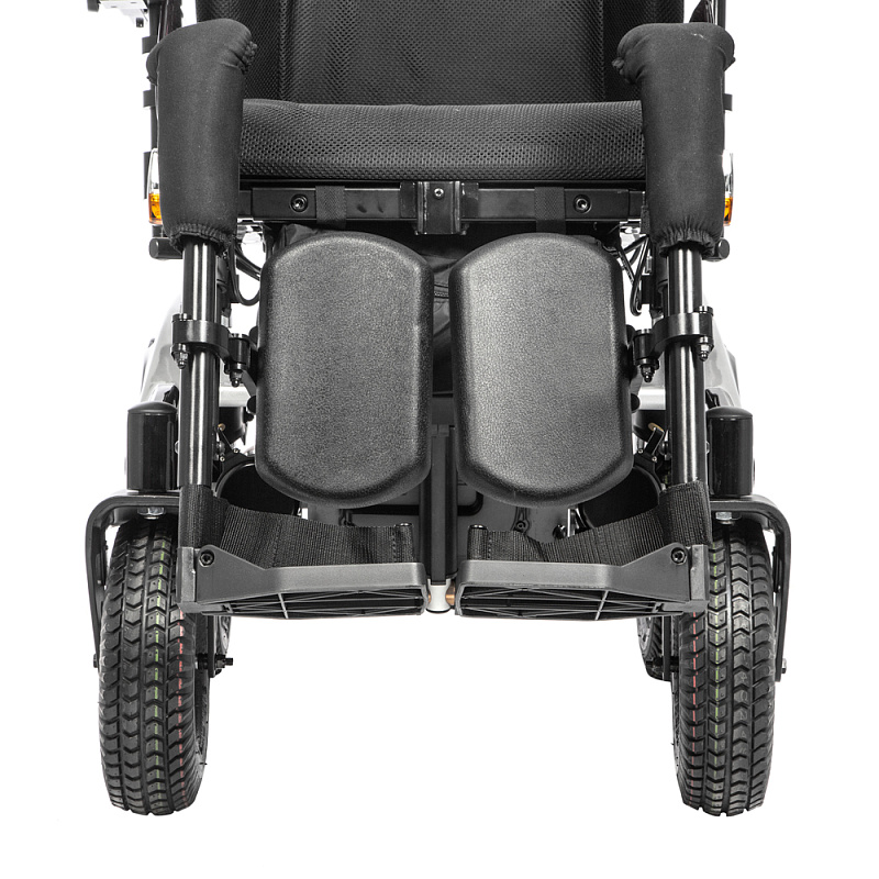 Коляска инвалидная с электроприводом Ortonica Pulse 390 – мощная и проходимая коляска, оснащенная емкими свинцово-кислотными аккумуляторами и колесами с внедорожным протектором. Широкий диапазон регулировок позволяет настроить коляску в соответствии с особенностями пользователя. Электрорегулировки угла наклона спинки, сиденья и подножек обеспечивают комфортную самостоятельную настройку.